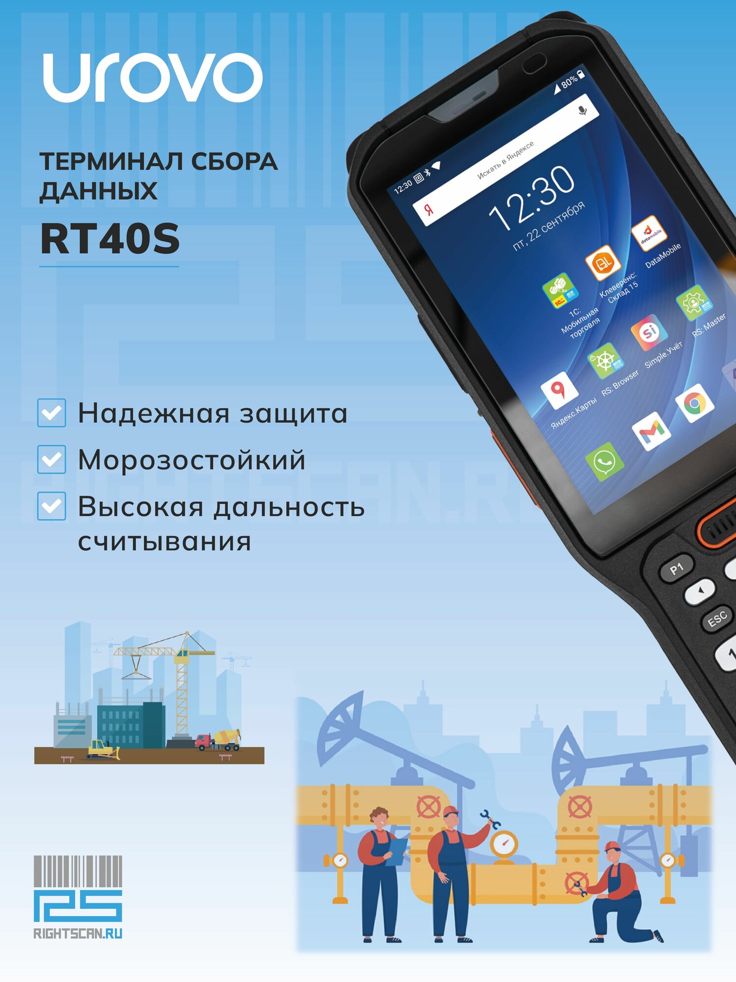 Купить Терминал сбора данных (ТСД) UROVO RT40S NFC, 2D сканер, 4″, IP68, 29 клавиш с доставкой по всей России.