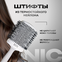 Для создания мягких локонов и придания объема - Нейлоновые штифты покрыты слоем турмалина, который при нагревании выделяет отрицательно заряженные ионы. Ионы разбивают частицы воды, облегчая их проникновение в кутикулу. Волосы становятся гладкими и блестящими. - Керамическое покрытие корпуса с большими вентиляционными отверстиями способствует равномерному нагреву, что существенно сокращает время сушки волос. Избавляет волосы от статического электричества - Эргономичная прорезиненная ручка не скользит в руке. Снабжена выдвижным наконечником для разделения прядей. Внимание: вся продукция бренда Olivia Garden производится на фабриках в Республике Корея и/или Китай. Страна производства указывается исходя из партии!