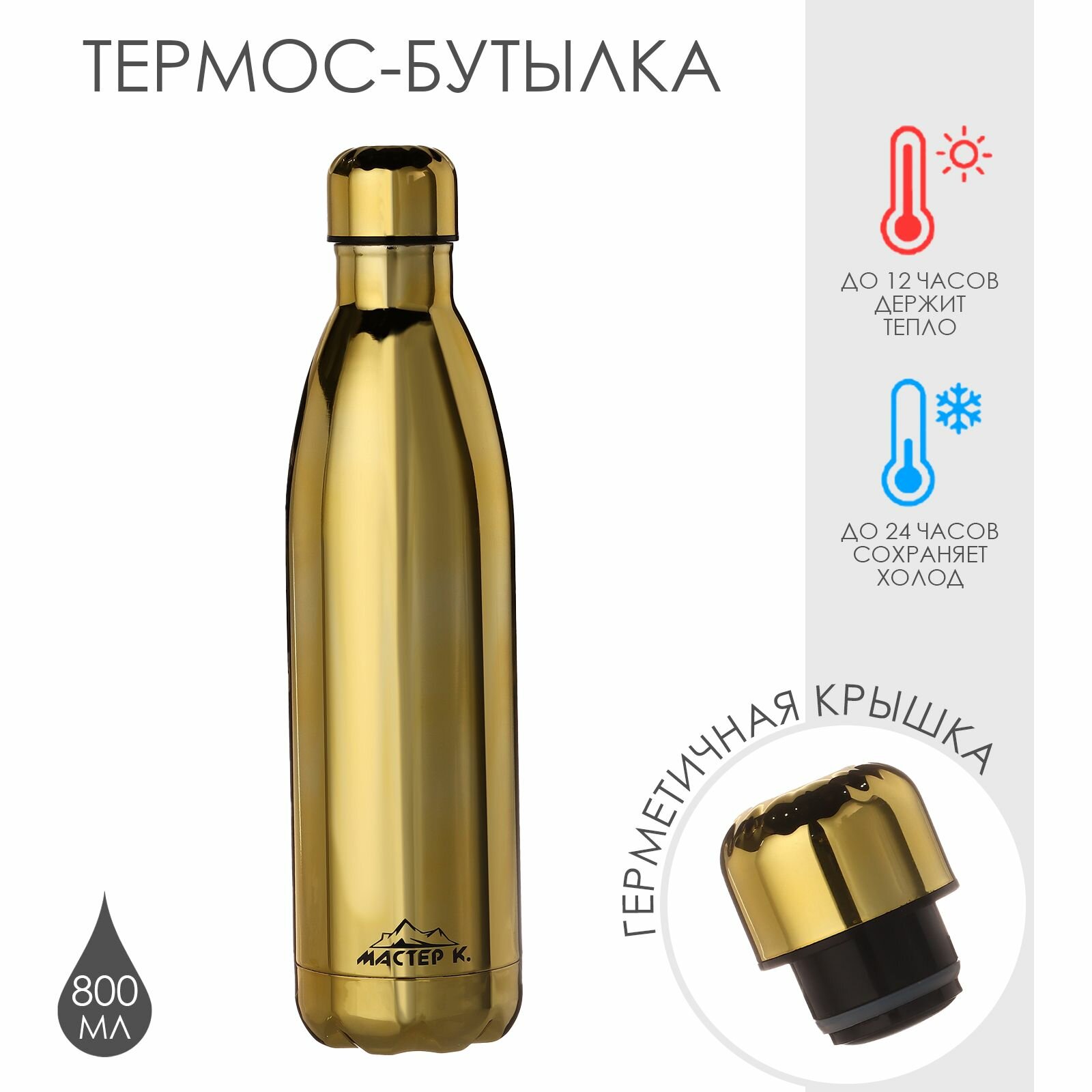 Купить Термобутылка для воды «Мастер К», вакуумная, нержавеющая сталь, 800 мл, золото с доставкой по всей России. Термобутылка для воды «Мастер К», вакуумная, нержавеющая сталь, 800 мл, золото: сравнение цен, характеристики, фото, актуальное наличие и цены.