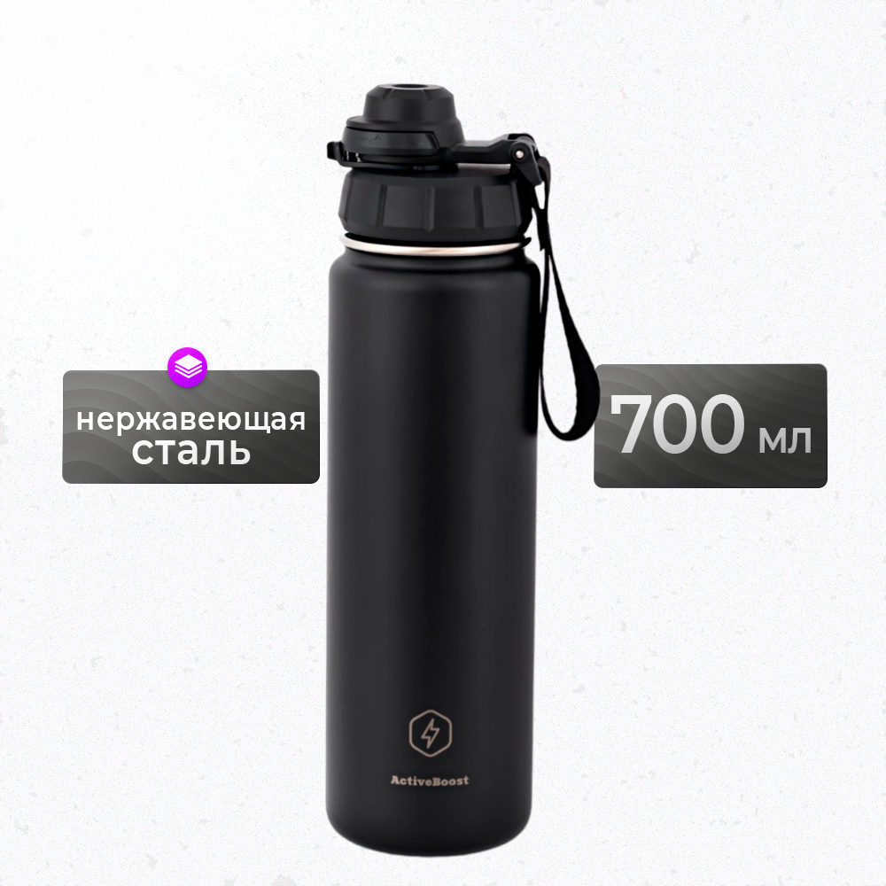 Термобутылка из нержавеющей стали "ActiveBoost" в стильном черном цвете - это идеальный выбор для тех, кто ценит качество и функциональность. Этот универсальный аксессуар объемом 700мл. станет вашим незаменимым спутником на каждый день, в любой ситуации: будь то работа, учеба, спорт или путешествие. Специально разработанная для сохранения температуры напитков, термобутылка сохраняет горячий чай или кофе в течение длительного времени, а прохладительные напитки, такие как лимонад или вода, всегда останутся освежающими. Благодаря двойным стенкам и герметичной крышке, влага не испаряется, и напиток сохраняет свой вкус и аромат. ActiveBoost - это не просто бутылка, это стильный элемент вашей повседневной жизни. Будь то утренний бег, экскурсия на свежем воздухе, фитнес-тренировка или же спокойный день на работе, эта термобутылка всегда поддержит вас. Черный цвет придаст вашему образу элегантности и строгости, а также подойдет как идеальный подарок на день рождения или другой праздник. Подарите ActiveBoost своему мужу, папе, сестре или даже коллеге - этот стильный аксессуар безупречно подойдет как мужчине, так и женщине. К тому же, это оригинальный вариант подарка на 23 февраля или 8 марта, который подчеркнет ваше внимание и заботу. Термобутылка "ActiveBoost" также пригодится в автомобиле, на пикнике или в походе. Ее устойчивое дно и надежная конструкция позволяют брать ее повсюду, не беспокоясь о разливах и прочих неудобствах. Подходит для использования на кухне и в школе, а также в качестве спортивной посуды для тренировок. Инновационный дизайн, высококачественная нержавеющая сталь и удобство использования делают "ActiveBoost" необходимым предметом для тех, кто живет активной жизнью и выбирает только лучшее.