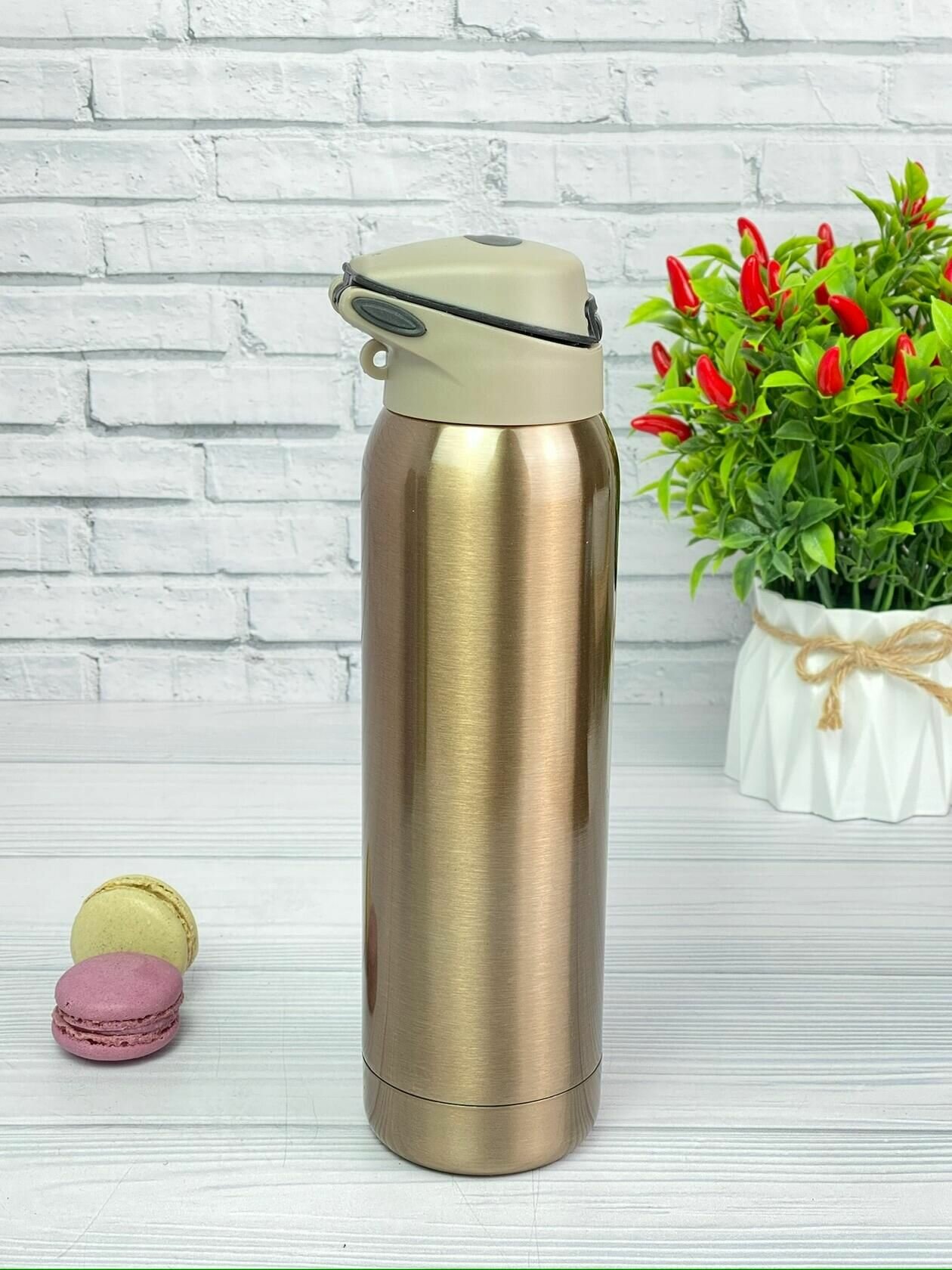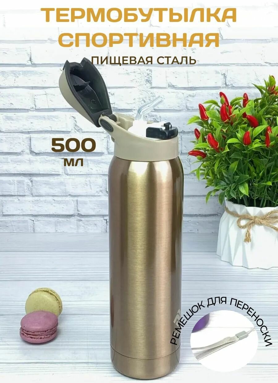 Бутылка для воды непроливайка для спорта с трубочкой 500 мл, термобутылка металлическая для питья. Термобутылка спортивная с трубочкой, объём: 500 мл, цвет: бронзовый. Ёмкость: 500 мл. Материал: сталь, пластмасса. Размер термобутылки: 7,8x7,8x26 см. Вакуумный клапан. Трубочка для питья на ходу. Ремешок для переноски. Пищевая сталь.