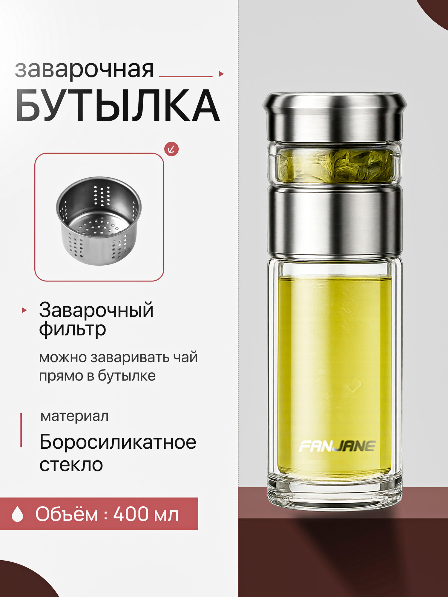Купить Термобутылка заварочная с фильтром CFPRESS K-28 из боросиликатного стекла, 300 мл, серебристая с доставкой по всей России.