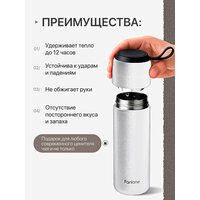 Благодаря стенкам из стали, термобутылка удерживает тепло (или холод) напитка в течение длительного времени. Это делает её отличным компаньоном как в холодное утро, так и в летний зной.