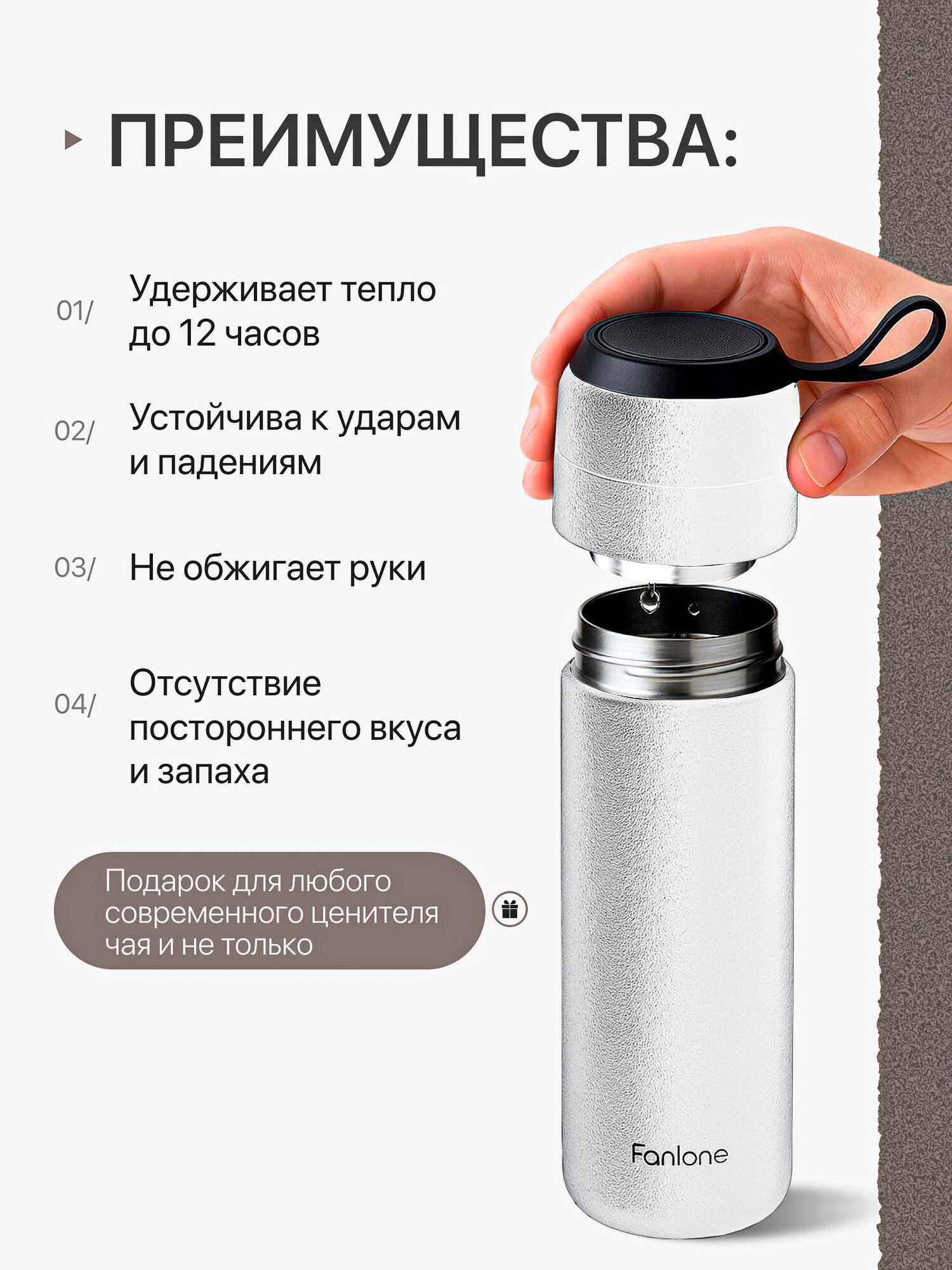 Стальная заварочная бутылка CFPRESS — это современное решение для ценителей чая, травяных и фруктовых настоев. Она объединяет удобство термокружки, функциональность чайника и надёжность термобутылки. Идеально подходит для использования дома, в офисе, в автомобиле, на прогулке или в путешествии.