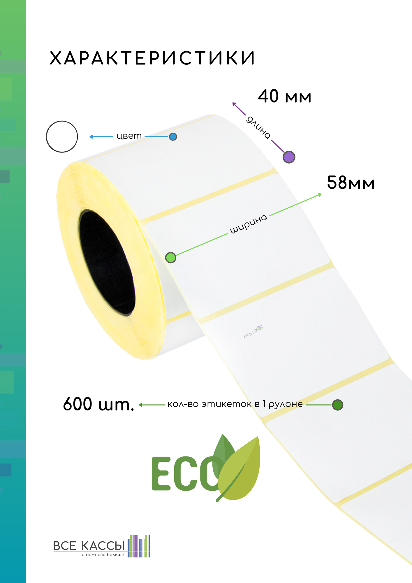 Термоэтикетка ЭКО 58х40, 16 роликов (600 шт в ролике) втулка 40 мм упаковка: сравнение цен, характеристики, фото, актуальное наличие и цены.