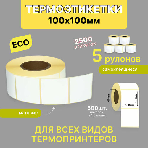 Купить Термоэтикетки 100х100 мм 500шт ЭКО 5 рулонов самоклеящиеся стикеры наклейки 10х10 см с доставкой по всей России.