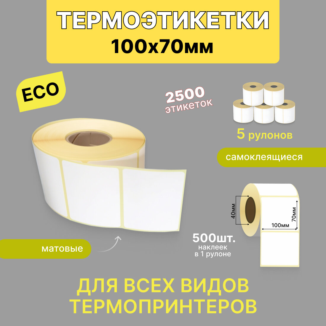 Термоэтикетки 100х70 мм 500шт ЭКО / 5 рулонов /термотрансферные самоклеящиеся этикетки: сравнение цен, характеристики, фото, актуальное наличие и цены.