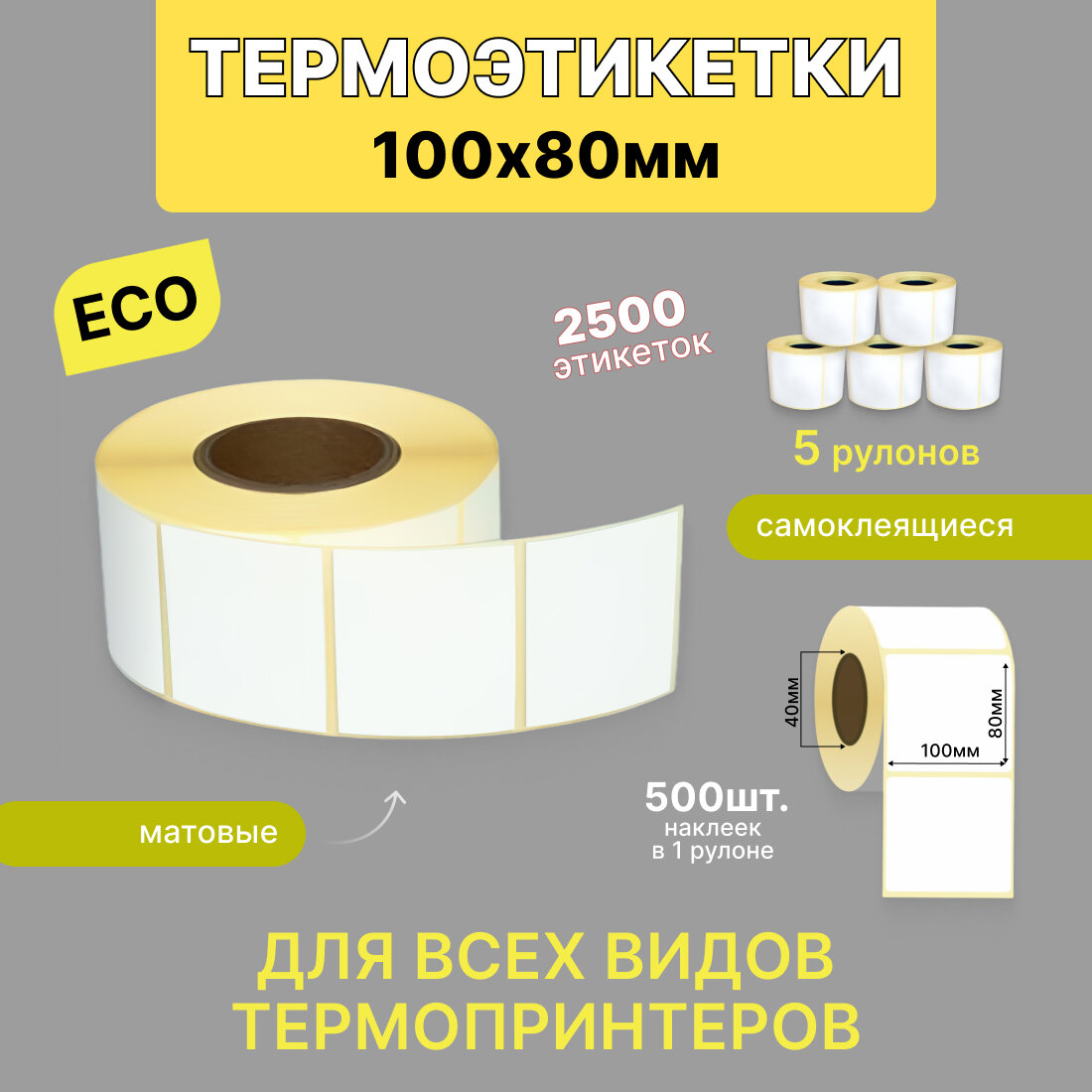 Размеры термоэтикеток 100 на 80 мм. В упаковке 5 рулонов. В 1 рулоне 500 шт термонаклеек. Диаметр рулона 90 мм (+/- 3 мм)
