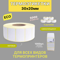 Размеры термоэтикеток 30 на 20 мм. В упаковке 5 рулонов. В 1 рулоне 1000 шт. термонаклеек. Диаметр рулона 75 мм (+/- 3 мм)