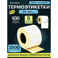 Купить Термоэтикетки 70х50 мм 500 шт ЭКО 5 рулонов самоклеящиеся стикеры принтер наклейки с доставкой по всей России.