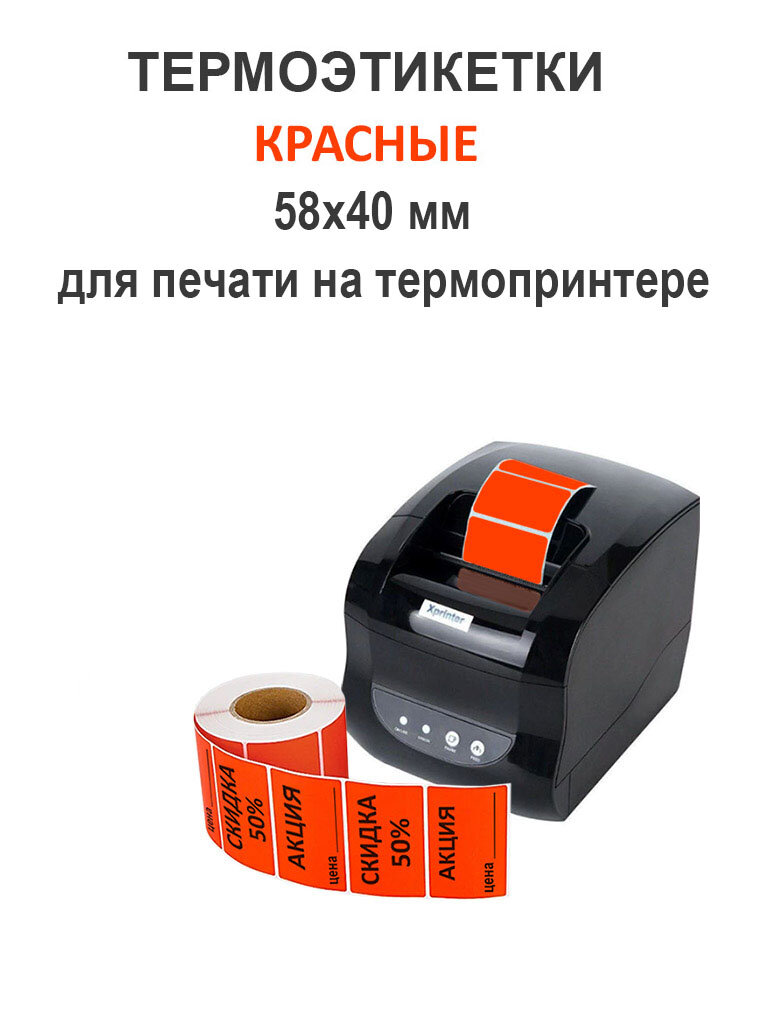 Купить Термоэтикетки красные 58х40 мм ЭКО, 700 шт. в рулоне, втулка 40мм (6 шт в упаковке) / Самоклеящиеся этикетки для термопринтера. с доставкой по всей России.