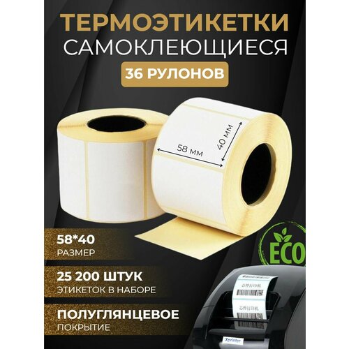 Купить Термоэтикетки самоклеящиеся эко 58*40 мм 36 рулонов 25 200шт с доставкой по всей России. Термоэтикетки самоклеящиеся эко 58*40 мм 36 рулонов 25 200шт: сравнение цен, характеристики, фото, актуальное наличие и цены.