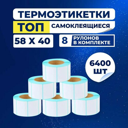Термоэтикетки самоклеящиеся ТОП 58х40 мм. Намотка в 1 рулоне - 800 этикеток. Внутренний диаметр втулки - 40 мм.
