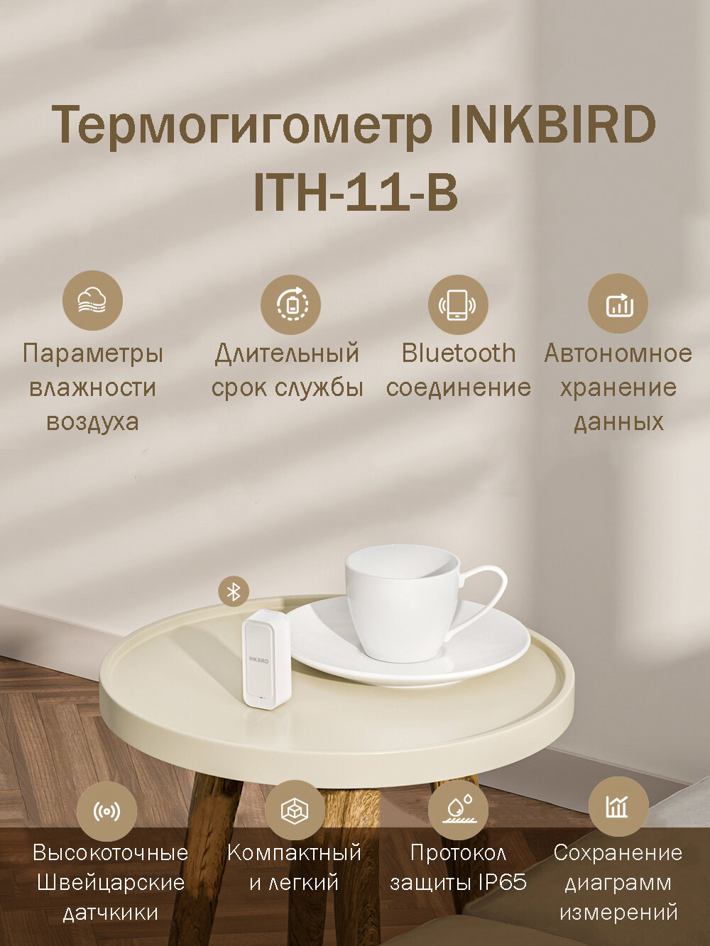 Термогигрометр INKBIRD ITH-11B, Bluetooth 5.0, IP65, датчик температуры и влажности, логгер: сравнение цен, характеристики, фото, актуальное наличие и цены.