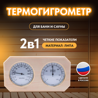 Термогигрометр - прибор для измерения и регулировки влажности воздуха в парной бани, сауны или хамама. Данная банная станция это 2в1: Термометр (для измерения температуры в парилке) и гигрометр (для измерения влажности в парной). Прибор служит для измерения температуры и влажности. Изготовлен из термостойких материалов. Предназначен для настенного размещения. Великолепное исполнение в корпусе из липы. циферблаты закрыты стеклом.