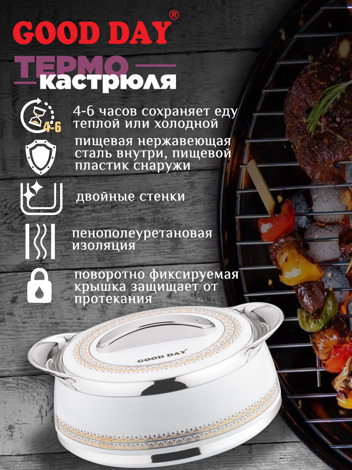 Купить Термокастрюля Good Day Elena White, объемом 2,5 литра с доставкой по всей России. Термокастрюля Good Day Elena White, объемом 2,5 литра: сравнение цен, характеристики, фото, актуальное наличие и цены.