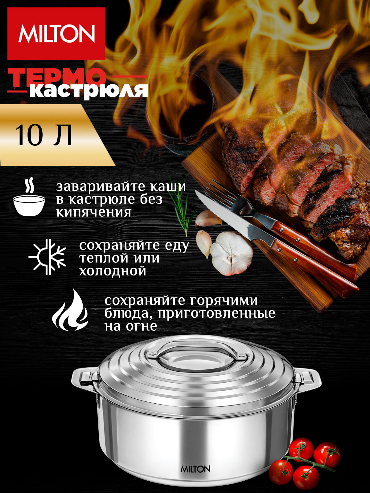 Термокастрюли не предназначены для приготовления пищи на плите, в духовом шкафу, в микроволновой печи или на открытом огне, они предназначены для использования исключительно в качестве термоса.