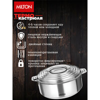 Корпус термокастрюли представляет собой термокапсулу из высококачественной безопасной пищевой нержавеющей стали, которая обеспечивает сохранность содержимого термокастрюли горячим или холодным в течение 4-6 часов. Термокастрюли используют для сервировки стола, чтобы приготовленные блюда оставались горячими или холодными на протяжении длительного застолья. Также термокастрюли очень востребованы детьми и людьми с ограниченными физическими возможностями, когда пища заблаговременно помещается в термокастрюли, а ко времени трапезы остается горячей, не требующей разогревания. Очень удобны термокастрюли для использования на пикнике, чтобы салаты оставались длительное время холодными, а блюда, запеченные на углях, оставались горячими. Корпуса термокастрюль выполнены из ударопрочной нержавеющей стали, что обеспечивает их использование без деформации корпуса на протяжении очень длительного времени. Нержавеющая сталь не вступает в контакт с пищевыми продуктами и не впитывает запаха, поэтому является абсолютно безопасной для продолжительного хранения пищи. Термокастрюли экологически чистые и безопасные, они сделают вашу жизнь проще!