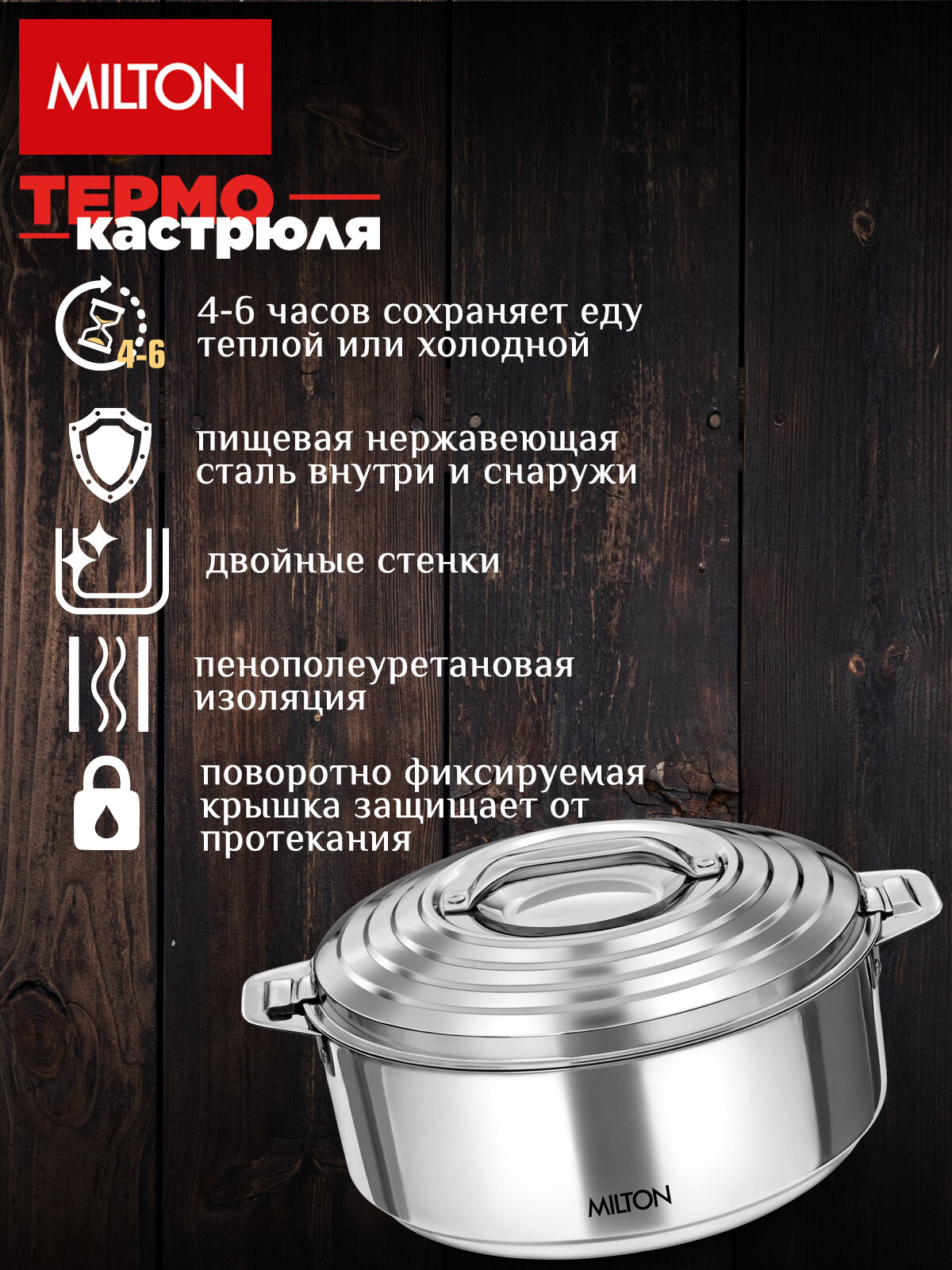 - термокастрюля изготовлена из безопасной пищевой нержавеющей стали марки SS 304;