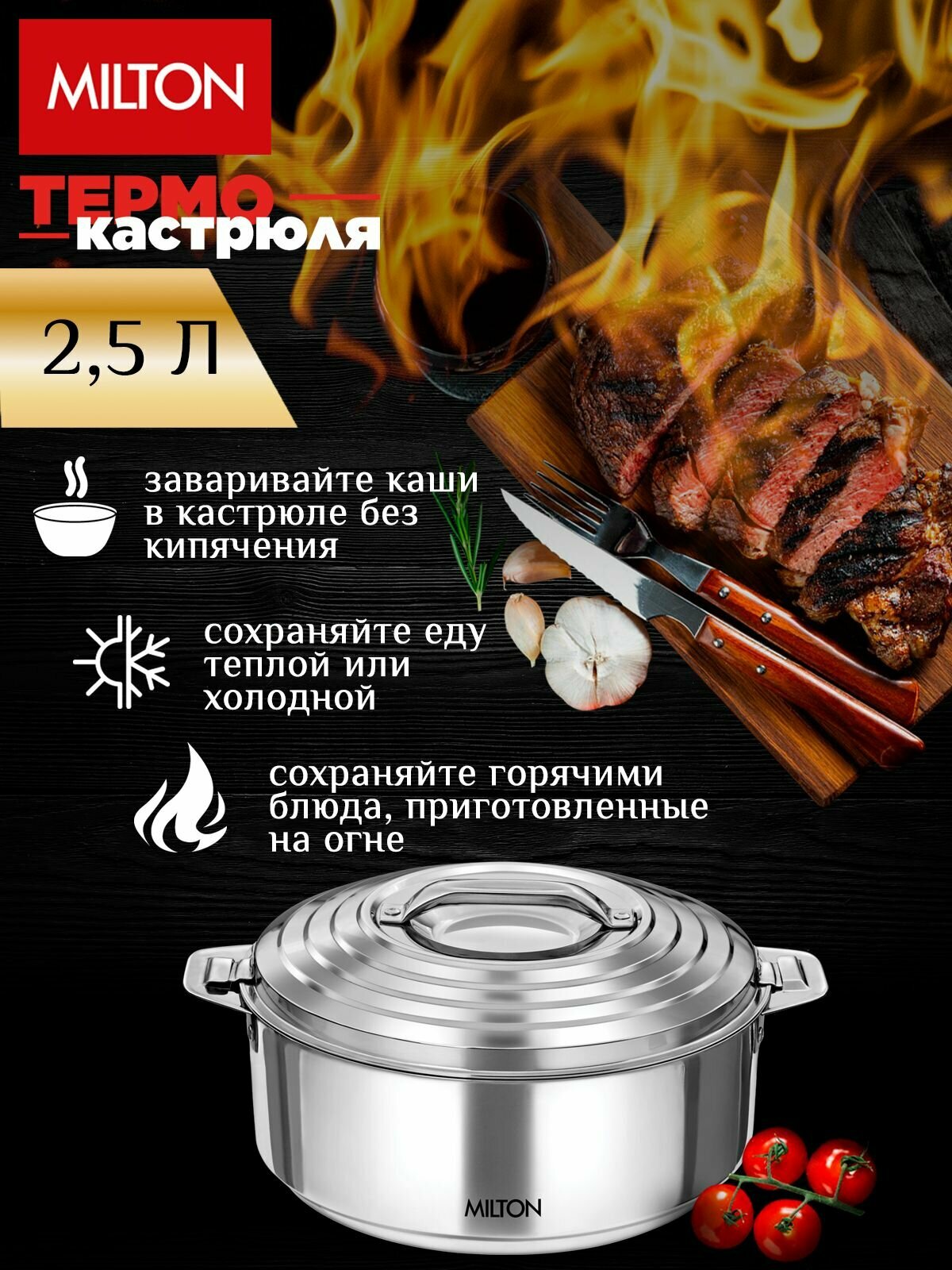 Термокастрюли не предназначены для приготовления пищи на плите, в духовом шкафу, в микроволновой печи или на открытом огне, они предназначены для использования исключительно в качестве термоса.