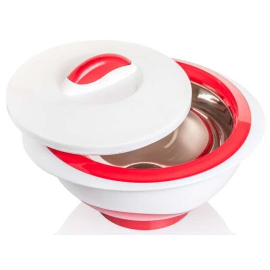 В жизни современных женщин масса забот, поэтому без кухонных помощников им нельзя обойтись. Новым веянием в этой стихии стала термопосуда. Она позволяет хозяйке сохранить свои силы и время. Благодаря термокастрюле, ваши блюда длительное время сохранят свою изначальную температуру на протяжении 6 часов. Кастрюля изготовлена из термостойкого пластика и качественной нержавеющей стали. Эти материалы дают уверенность в безопасности эксплуатации термокастрюль даже при длительном поддержании высоких или низких температур. Внешний вид термопосуды индийского производства призывает использовать её не только для хранения продуктов, но и для подачи в ней блюд на стол. Идеальна для дачи и пикника! Вы сможете наслаждаться общением с друзьями, не отвлекаясь на подогрев шашлыка, он останется горячим в термокастрюле Pinnacle. Инструкция по использованию: Подготовьте термокастрюлю: заполните её горячей водой (для горячей пищи) или холодной водой (для холодной пищи), дайте постоять несколько минут. Вылейте воду и сразу же заполните ёмкость готовой пищей. Если хотите использовать для горячей пищи, дождитесь, пока первоначальный пар не выйдет и только затем накройте крышкой. Не отделяйте внутреннюю чашу из нержавеющей стали от основного корпуса термокастрюли. Не держите вблизи открытого огня / электрической плиты / газовой плиты / и других источников тепла. Не использовать в микроволновой печи. Не мыть в посудомоечной машине. Важное указание: При хранении горячей пищи, не накрывайте и не закрывайте крышку, если пища находится в состоянии кипения. Фиксируйте и закрывайте крышку только в том случае, если температура пищи ниже 80 °С. Если вы, всё-таки, накрыли и зафиксировали крышку с пищей в состоянии кипения, есть вероятность того, что крышку невозможно будет отрыть в течение продолжительного времени из-за расширенного пара, образовавшегося в следствии высокой температуры в термокастрюле. При несоблюдении этой инструкции возможно повреждение термокастрюли. Инструкция по очистке: Рекомендовано только ручное мытьё с использованием мягкого мыла. Перед первым использованием тщательно её вымойте.