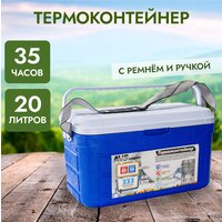 Контейнер AVS IB-20 изготовлен из прочного пластика, его можно использовать как стул, выдерживающий вес до 100 кг. Для удобства транспортировки помимо ручки присутствует ремень. При использовании аккумуляторов холода или льда объемом 40% от общего объема термоконтейнера отрицательная температура внутри сохраняется до 35 часов при температуре окружающей среды не выше +25°С.