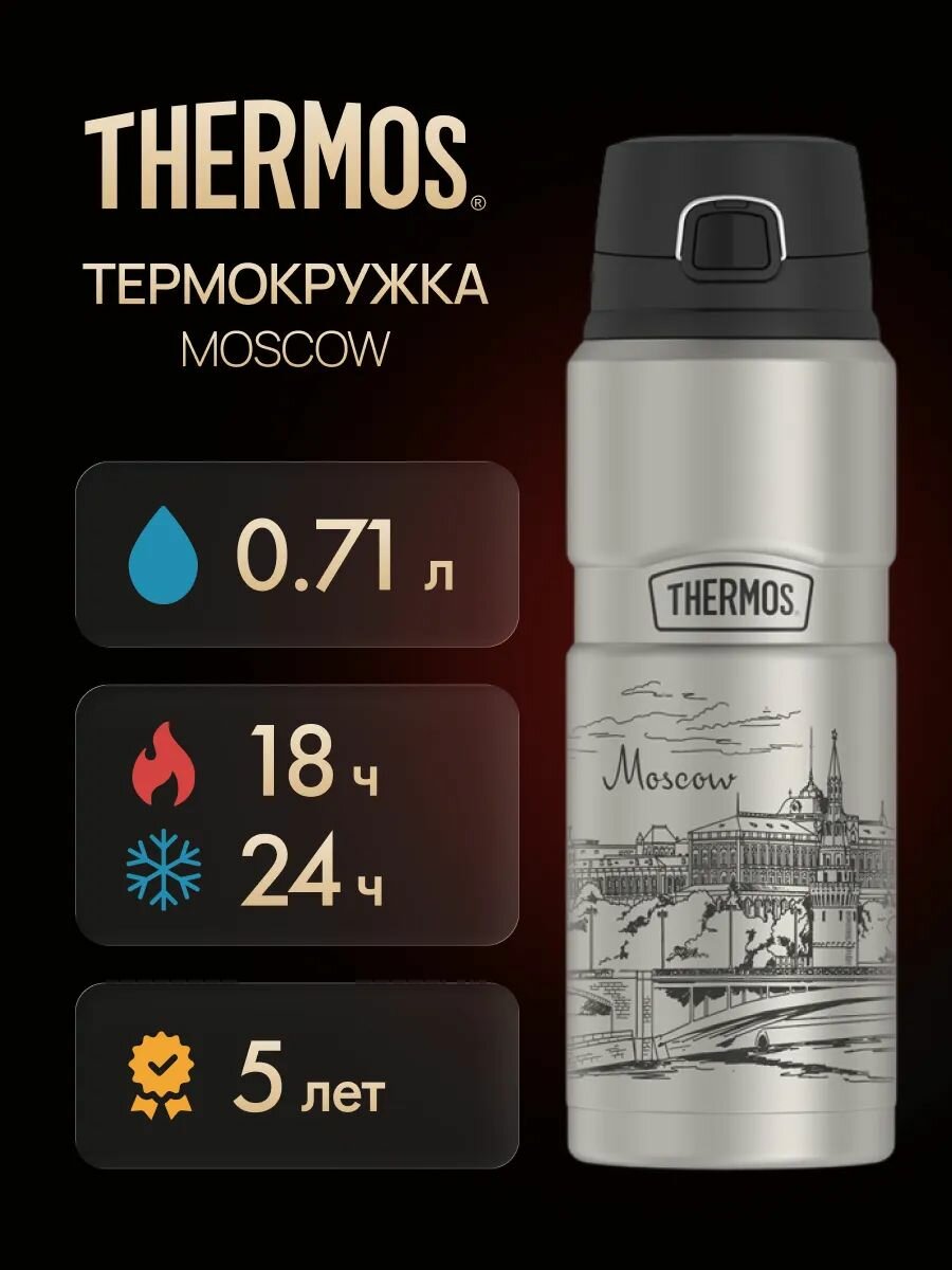 Термокружка 0.71 литра пробка-крышка сохраняет тепло 18 ч THERMOS SK4000 Moscow