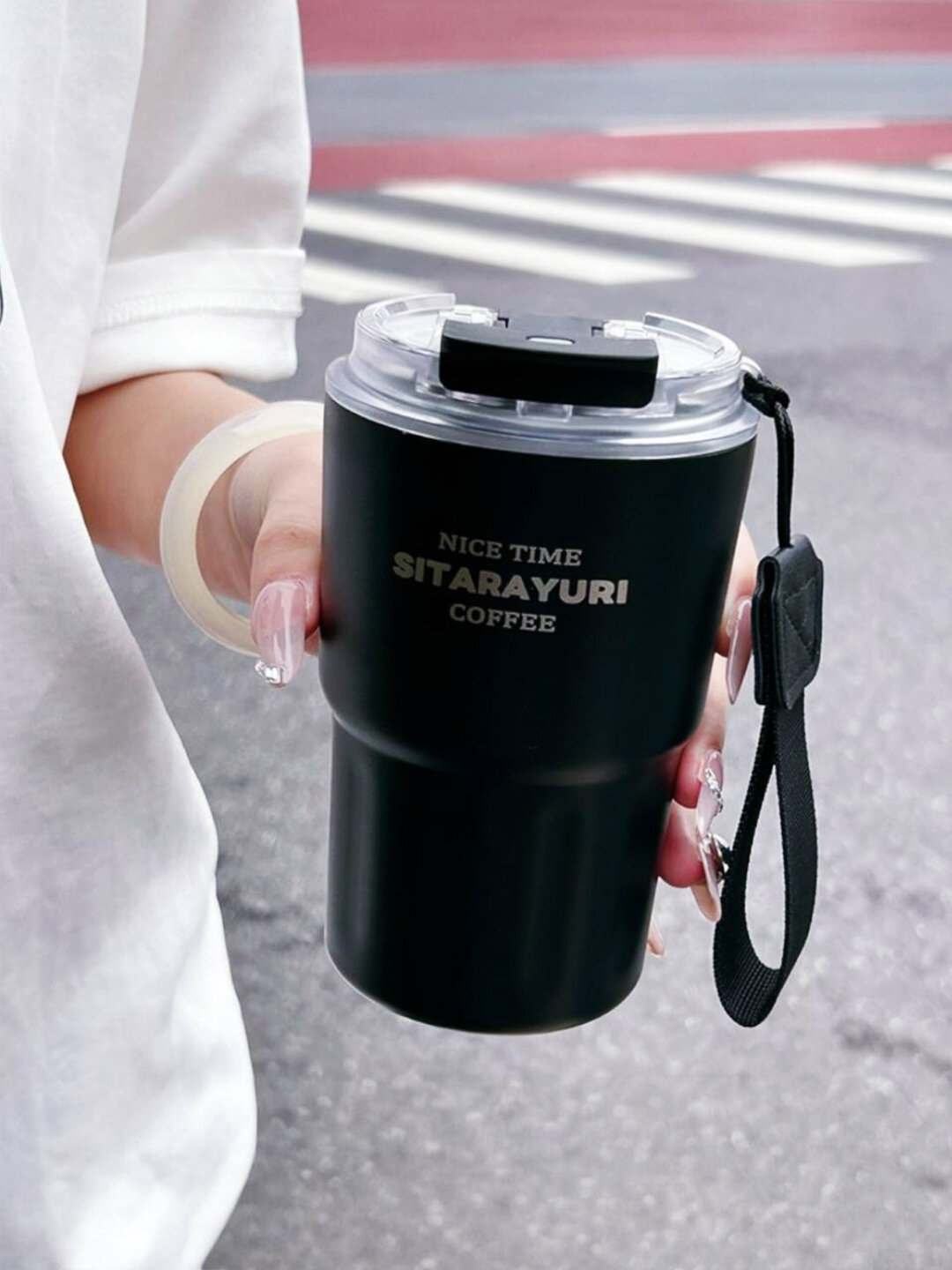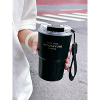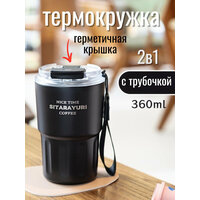 Купить Термокружка 360мл MadeHome, нержавеющая сталь, пластик, ремень для переноски с трубочкой Черная с доставкой по всей России.