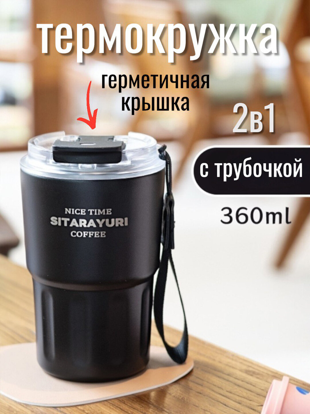 Термокружка 360мл MadeHome, нержавеющая сталь, пластик, ремень для переноски с трубочкой Черная: сравнение цен, характеристики, фото, актуальное наличие и цены.