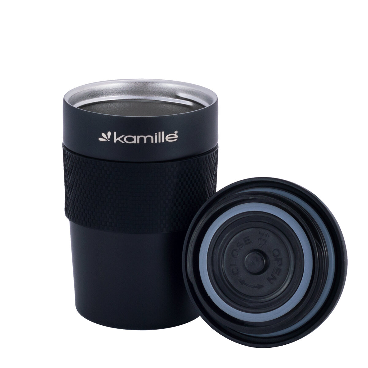 Термокружка Kamille обладает высоким качеством, надежностью, компактными размерами и эстетичным дизайном. Горячее остается горячим, а холодное холодным. Такой термокружка станет незаменимой в машине, на отдыхе или в путешествии.