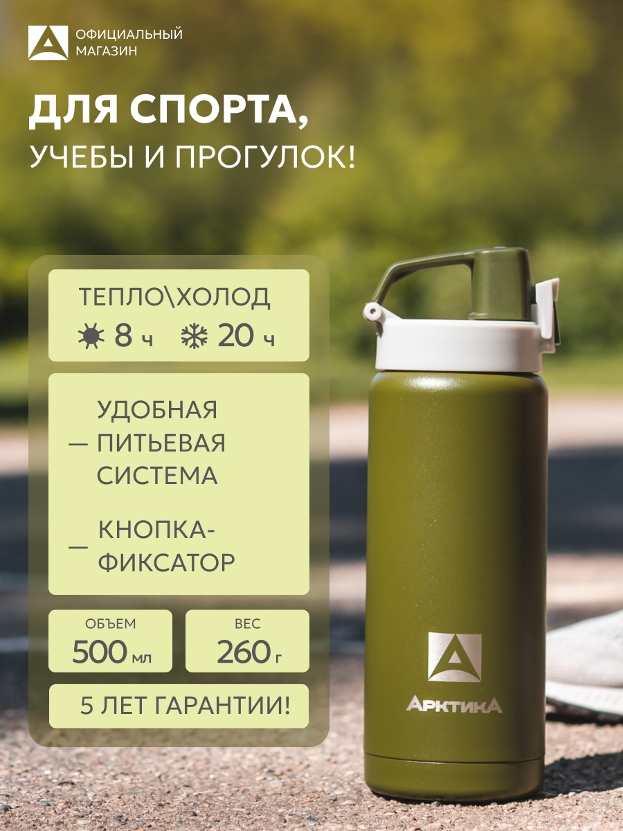 Термокружка Арктика объемом 0,5 литра - это идеальное решение для тех, кто ценит горячие и холодные напитки в любое время и в любом месте. Удобная питьевая система с крышкой, оснащенной замком-фиксатором, позволяет пить из термоса на ходу с помощью специального носика для питья, что делает его идеальным выбором для спортсменов, велосипедистов, студентов или школьников.