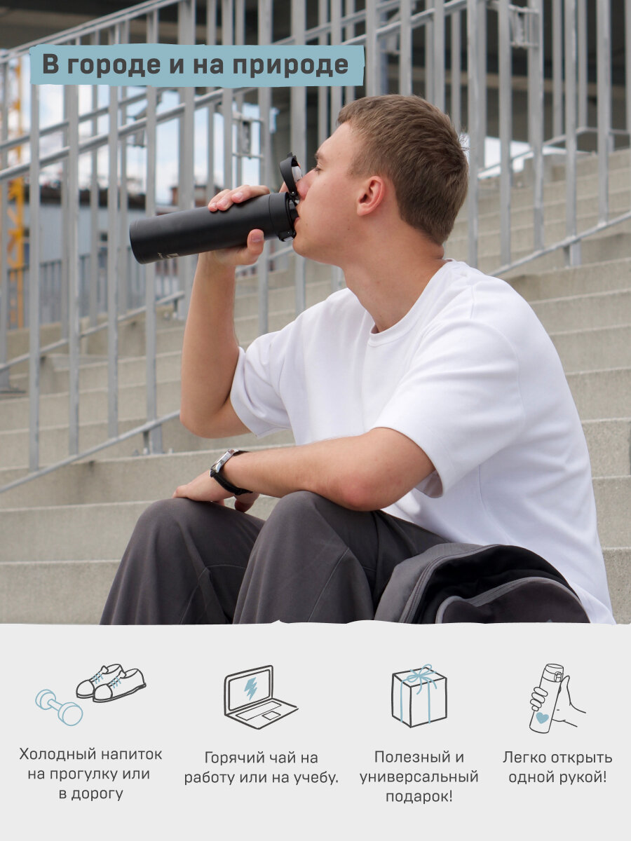 Эта вакуумная термокружка идеальное решение для активного образа жизни. Она легкая, компактная и надежная, что делает ее отличным подарком для мужчины, подруги, мамы, папы или коллеги.