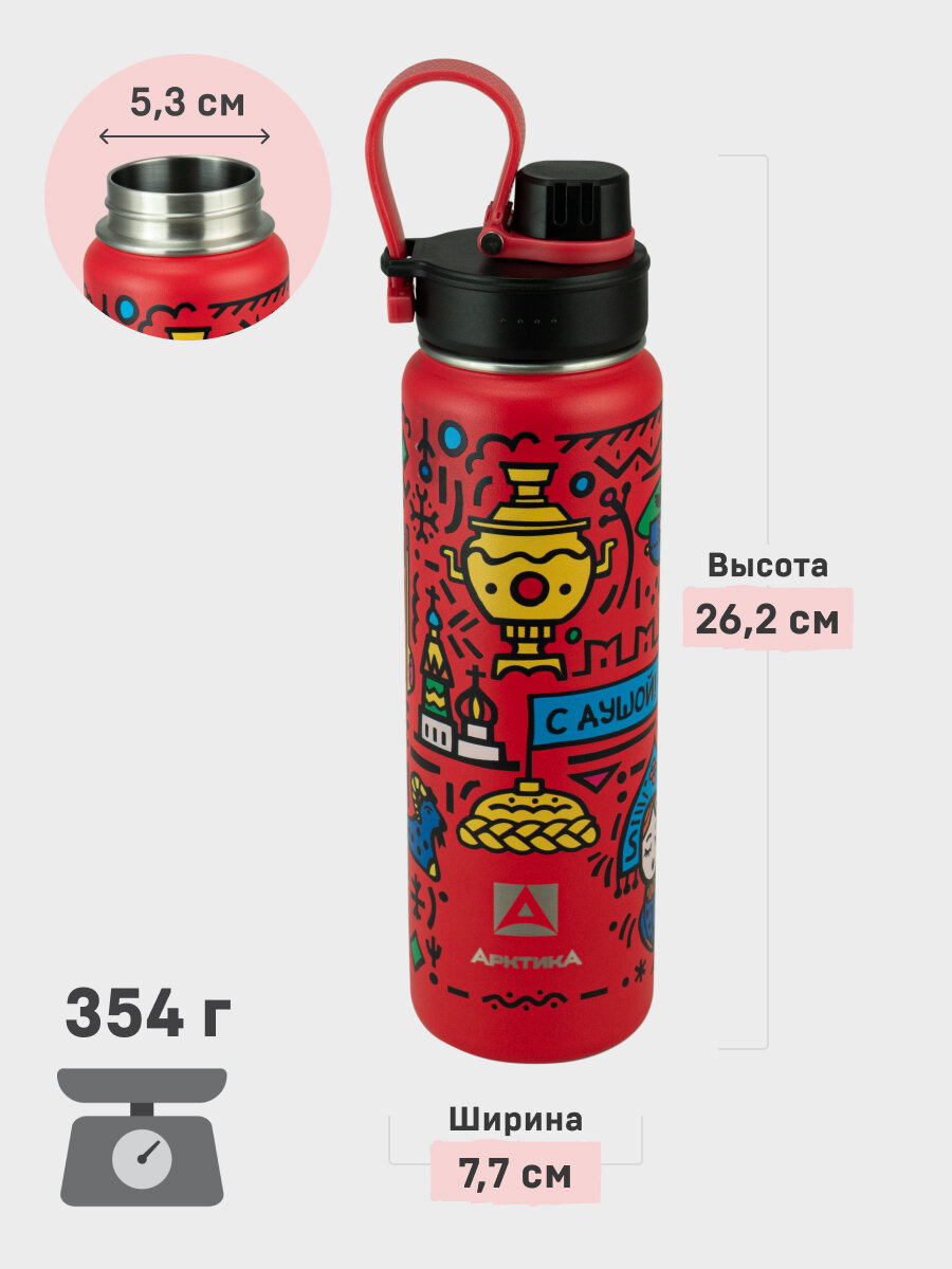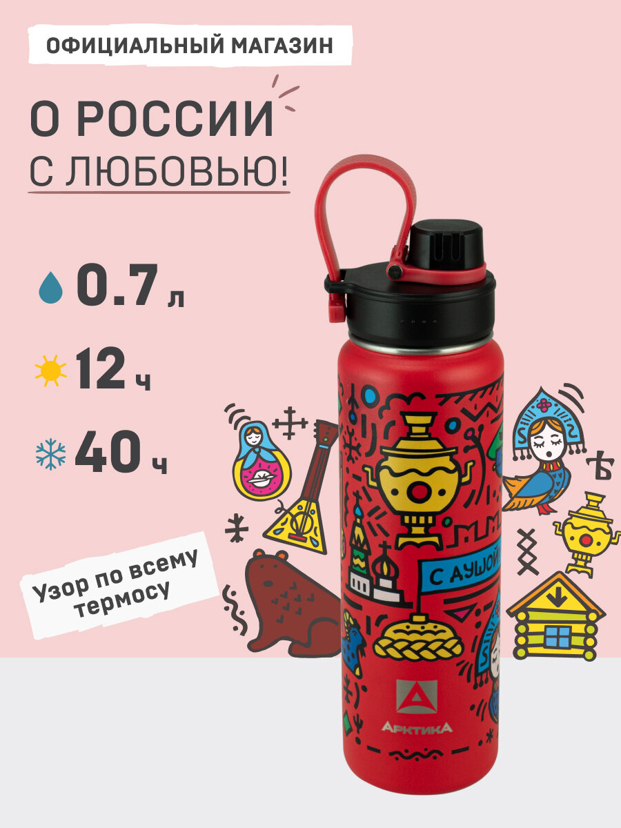 Купить Термокружка Арктика «О России», спортивная, 0,7 л, нержавеющая сталь, красная сувенир с доставкой по всей России.