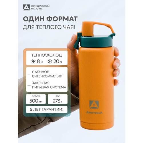Термокружка с ситечком Арктика объемом 0,5 литра - это идеальное решение для тех, кто ценит горячие и холодные напитки в любое время и в любом месте. Удобная питьевая система с крышкой, оснащенной замком-фиксатором, позволяет пить из термоса на ходу с помощью специального носика для питья, что делает его идеальным выбором для спортсменов, велосипедистов, студентов или школьников.