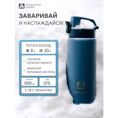 Термокружка с ситечком Арктика объемом 0,5 литра - это идеальное решение для тех, кто ценит горячие и холодные напитки в любое время и в любом месте. Удобная питьевая система с крышкой, оснащенной замком-фиксатором, позволяет пить из термоса на ходу с помощью специального носика для питья, что делает его идеальным выбором для спортсменов, велосипедистов, студентов или школьников.