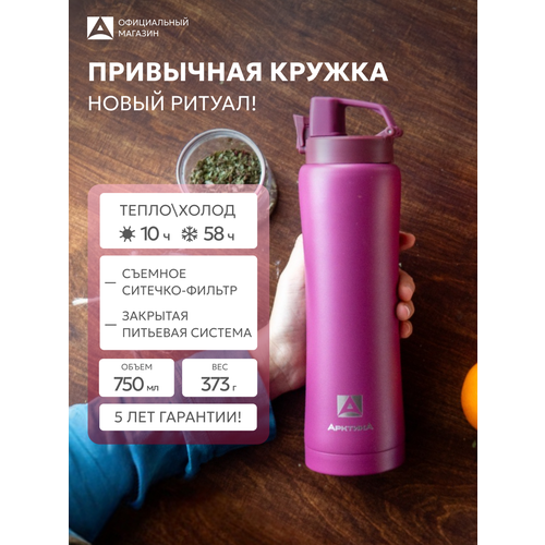 Термокружка с ситечком Арктика объемом 750 мл - это идеальное решение для тех, кто ценит горячие и холодные напитки в любое время и в любом месте. Удобная питьевая система с крышкой, оснащенной замком-фиксатором, позволяет пить из термоса на ходу с помощью специального носика для питья, что делает его идеальным выбором для спортсменов, велосипедистов, студентов или школьников.