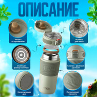 Купить Термокружка для чая и кофе термос TKK Premium из нержавеющей стали, 450 мл, хаки с доставкой по всей России.