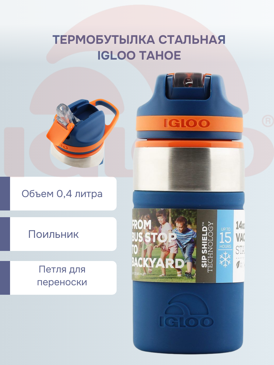 Купить Термокружка детская с трубочкой 0,4 л, термобутылка для воды, для чая и кофе стальная вакуумная нерполивайка Igloo с доставкой по всей России.