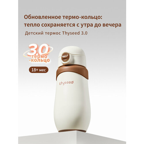 Термос детский с трубочкой и сменным горлышком для чая, компота, морса и других напитков для Вашего малыша. Термокружка детская Thyseed благодаря инновационному теплоудерживающему уплотнительному кольцу дольше сохраняет температуру жидкости (при начальной температуре жидкости 55 градусов спустя 6 часов температура жидкости составит 46.6 градусов). Запатентованный V-образный клапан в носике открывается автоматически при питье без необходимости кусать и зажимать его зубами. Кроме того клапан предотвращает разбрызгивание и проливание жидкости, делая использование термокружки более безопасным. V-образный клапан в носике термоса создает медленный веерный поток жидкости, предотвращая захлебывание при питье. Корпус термокружки изготовлен из медицинской нержавеющей стали 316L, которая более безопасна и долговечна. Уплотнительное кольцо, прокладки для крышки, носик-трубочка, трубочка изготовлены из мягкого силикона, который не имеет посторонних запахов, не содержит бисфенол-А и другие вредные вещества. Внутрення камера изделия не имеет сварных швов, благодаря чему, не образуется ржавчина и не происходит выделение частиц тяжелых металлов в налитую жидкость. В комплекте с термосом поставляется крышка с носиком-трубочкой и крышка-горлышко (без носика), которая позволяет пить непосредственно из термокружки. Таким образом термокружку могут использовать как малыши, только начинающие пить самостоятельно, так и дети более старшего возраста, которым для питья уже не нужен носик-трубочка, имитирующий соску. Стильный дизайн и идущий в комплекте чехол на ремешке (доступен в ярко-желтом и коричневом цветах) превращают термокружку в модный аксессуар. Термокружка идеально подходит для подарка.