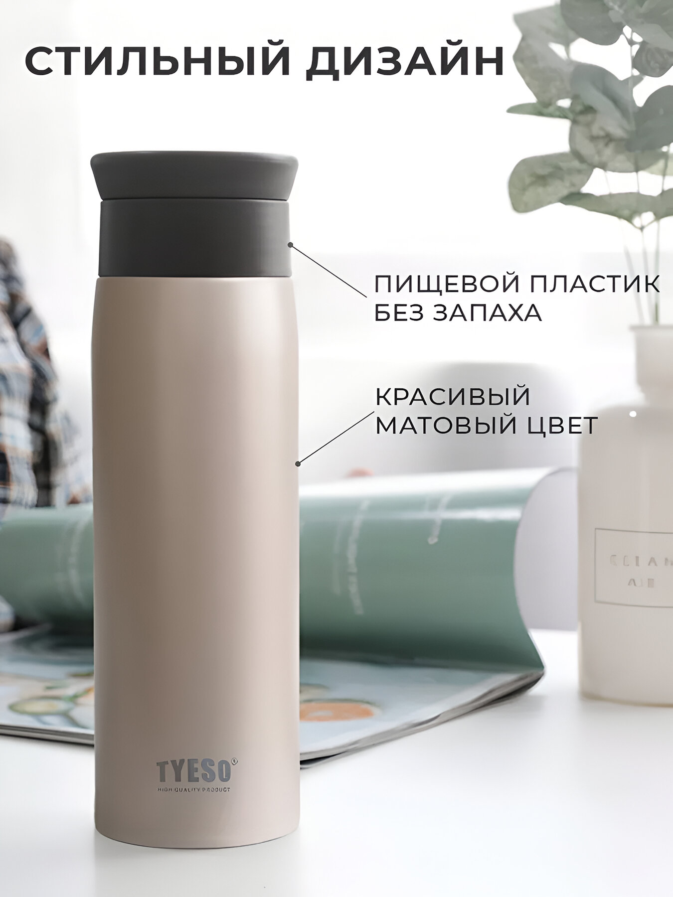 вакуумный, крышка-чашка, непроливайка, отверстие для питья в крышке, с ситечком, силиконовая вставка на корпусе