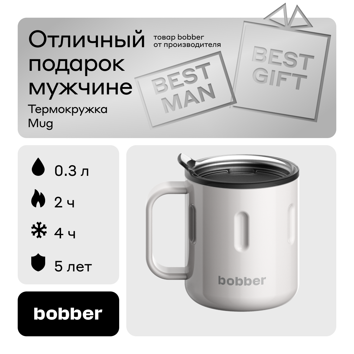 Термокружка для чая и кофе Bobber Mug серый 0,3 л для горячих напитков: сравнение цен, характеристики, фото, актуальное наличие и цены.