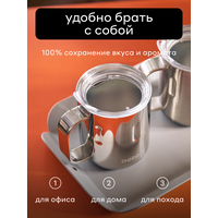 Термокружка Mug 300 мл сохраняет тепло чая, кофе и любого любимого напитка. Двойные стенки кружки из нержавеющей стали и крышка из тритана. Сохраняет температуру напитка в течение 2 часов, она не будет нагреваться и вам будет комфортно держать ее в руке. Сохраняет холод до 4 часов. Кружка универсальная. Ее можно использовать на работе, дома или взять с собой в поход. Кружка из нержавейки станет отличным подарком рыболову, охотнику, папе или маме, бабушке или дедушке, другу, подруге, брату, сестре, детям, ребенку, девушке, а еще коллеге или начальнику на день рождения или 23 февраля, 9 мая, 8 марта, юбилей, новый год, как кружка на пикник для путешественников. Это отличная альтернатива одноразовым стаканам. Кружка имеет удобную ручку, а тритановая крышка с отверстием для питья. При желании вы можете снять крышку и использовать ее без нее. Классическая форма чашки обеспечит удобство использования, а авторский дизайн подчеркнёт индивидуальность обладателя. Универсальный вариант для туристических походов, путешествий, рыбалки, охоты или выездов на природу. Она не только красиво смотрится, но и обеспечивает долгий срок службы изделия. Термокружку можно мыть в посудомоечной машине и она отлично подходит для повседневного использования. Заменит стеклянные рюмки и бокалы, смотрится эффектно и стильно. Стакан удобно помещается в руке. Перед первым применением обдайте внутреннюю колбу кипятком. Рекомендуется промывать термокружку после каждого использования. Не использовать в микроволновой печи.