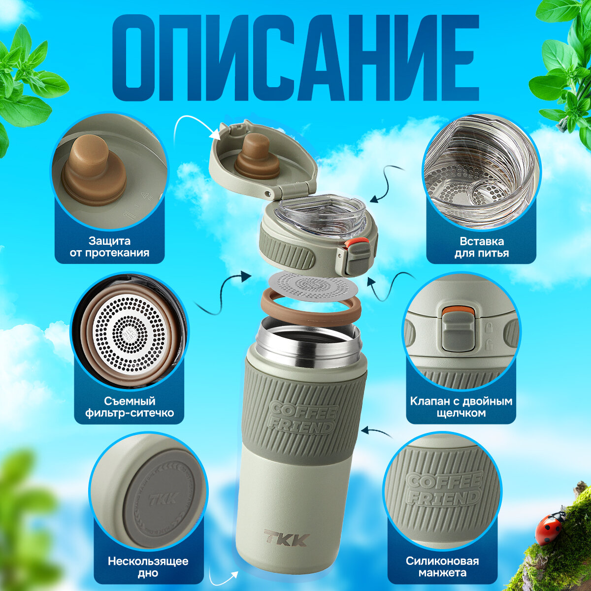 Термокружка для чая и кофе термос TKK Premium из нержавеющей стали, 450 мл, хаки: сравнение цен, характеристики, фото, актуальное наличие и цены.