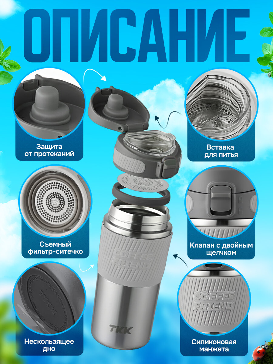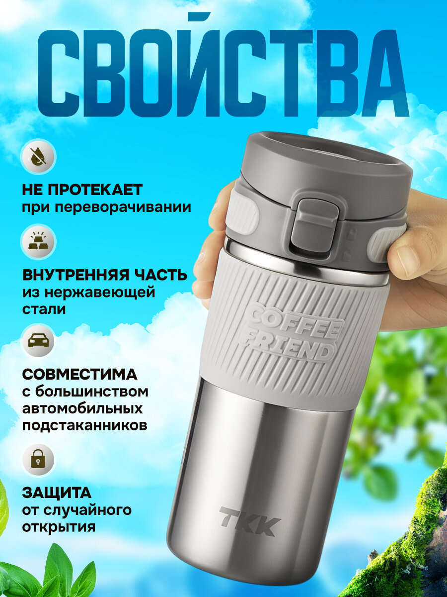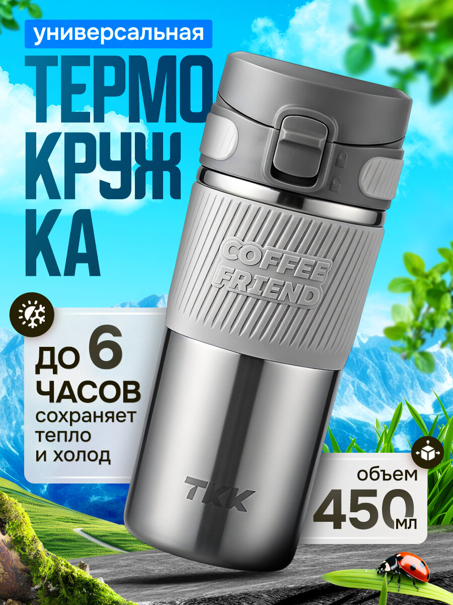 Термокружка для чая и кофе TKK Premium из нержавеющей стали, 450 мл, серебристая: сравнение цен, характеристики, фото, актуальное наличие и цены.