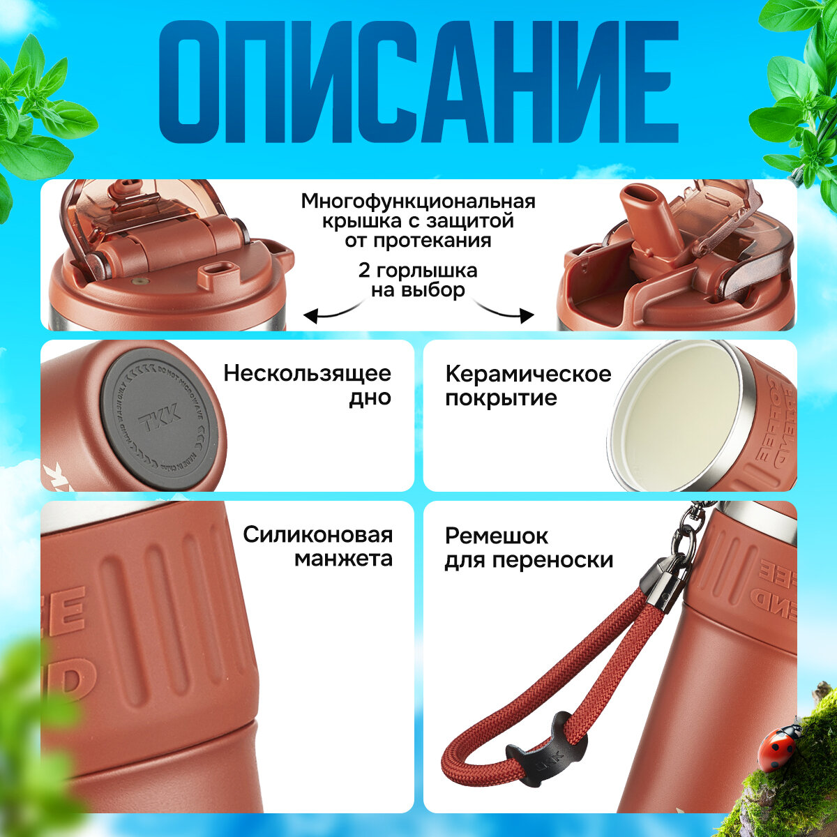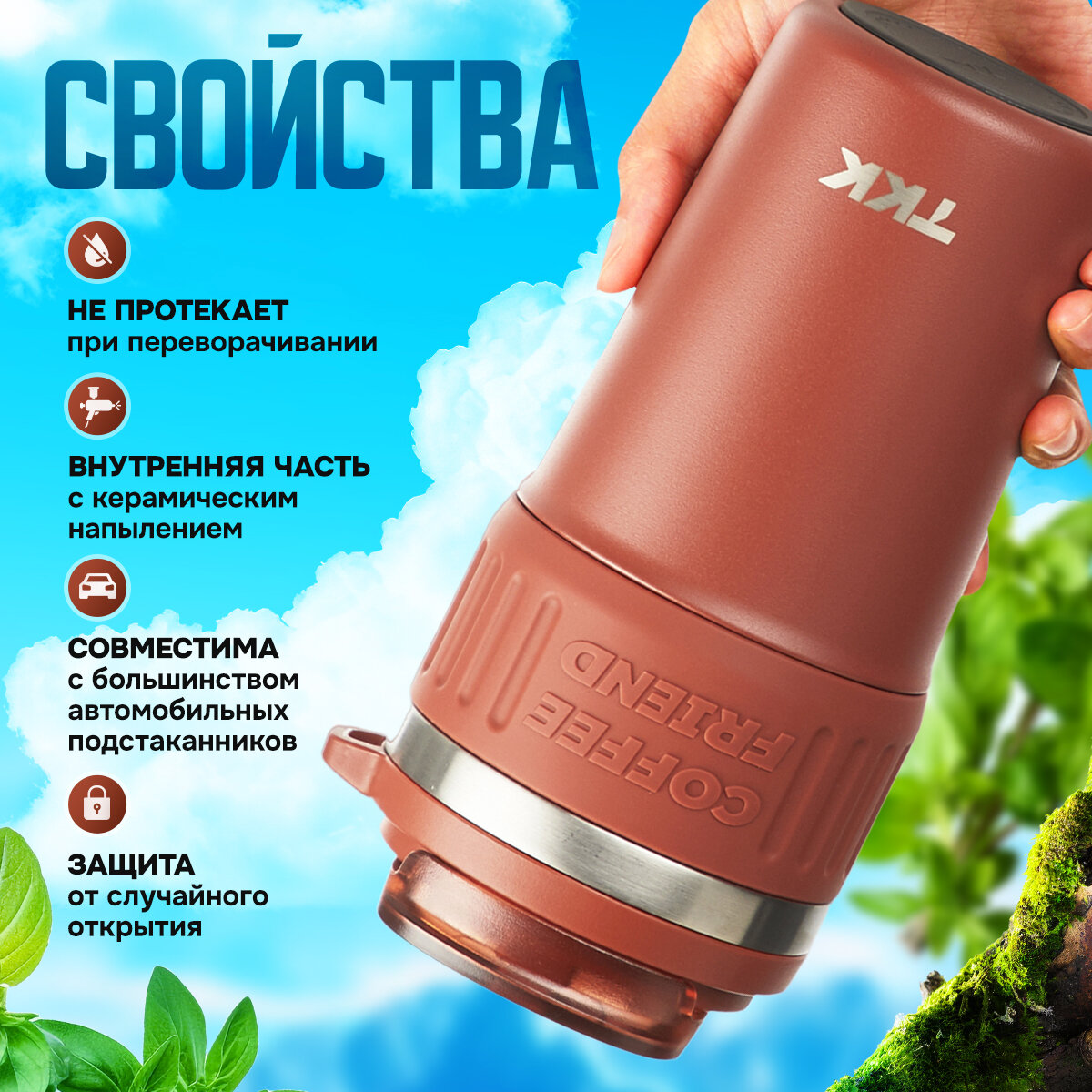 Термокружка для чая и кофе термос TKK Premium из нержавеющей стали, 630 мл, кирпичный: сравнение цен, характеристики, фото, актуальное наличие и цены.