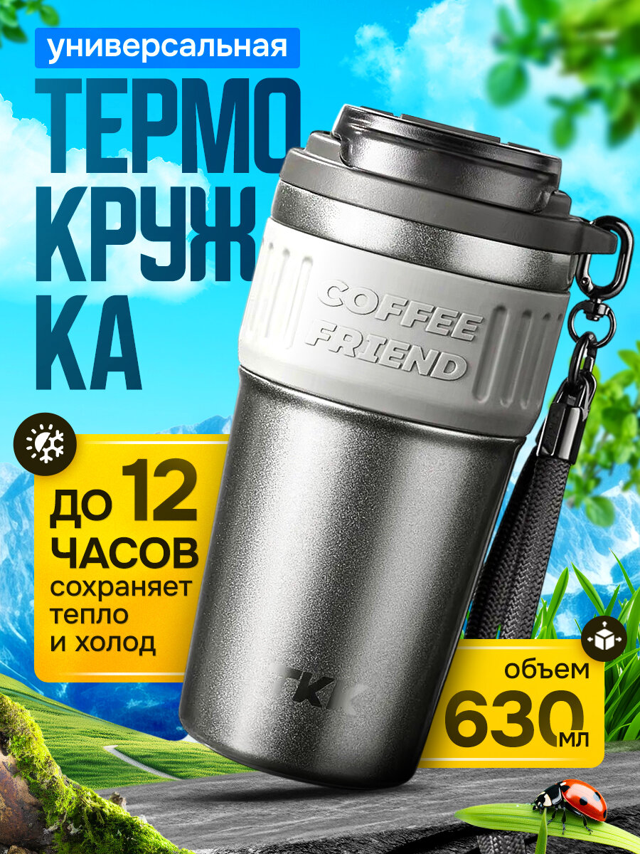 Термокружка для чая и кофе TKK Premium из нержавеющей стали, 630 мл, серебристый: сравнение цен, характеристики, фото, актуальное наличие и цены.