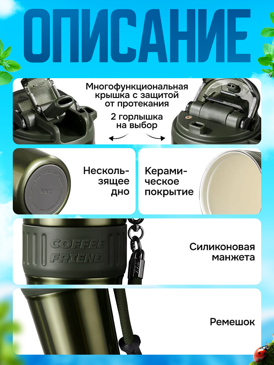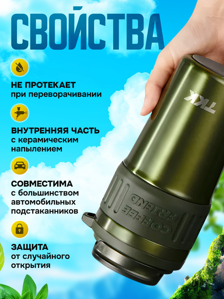 Термокружка для чая и кофе TKK Premium из нержавеющей стали, 630 мл, тёмно-зеленый металлик: сравнение цен, характеристики, фото, актуальное наличие и цены.