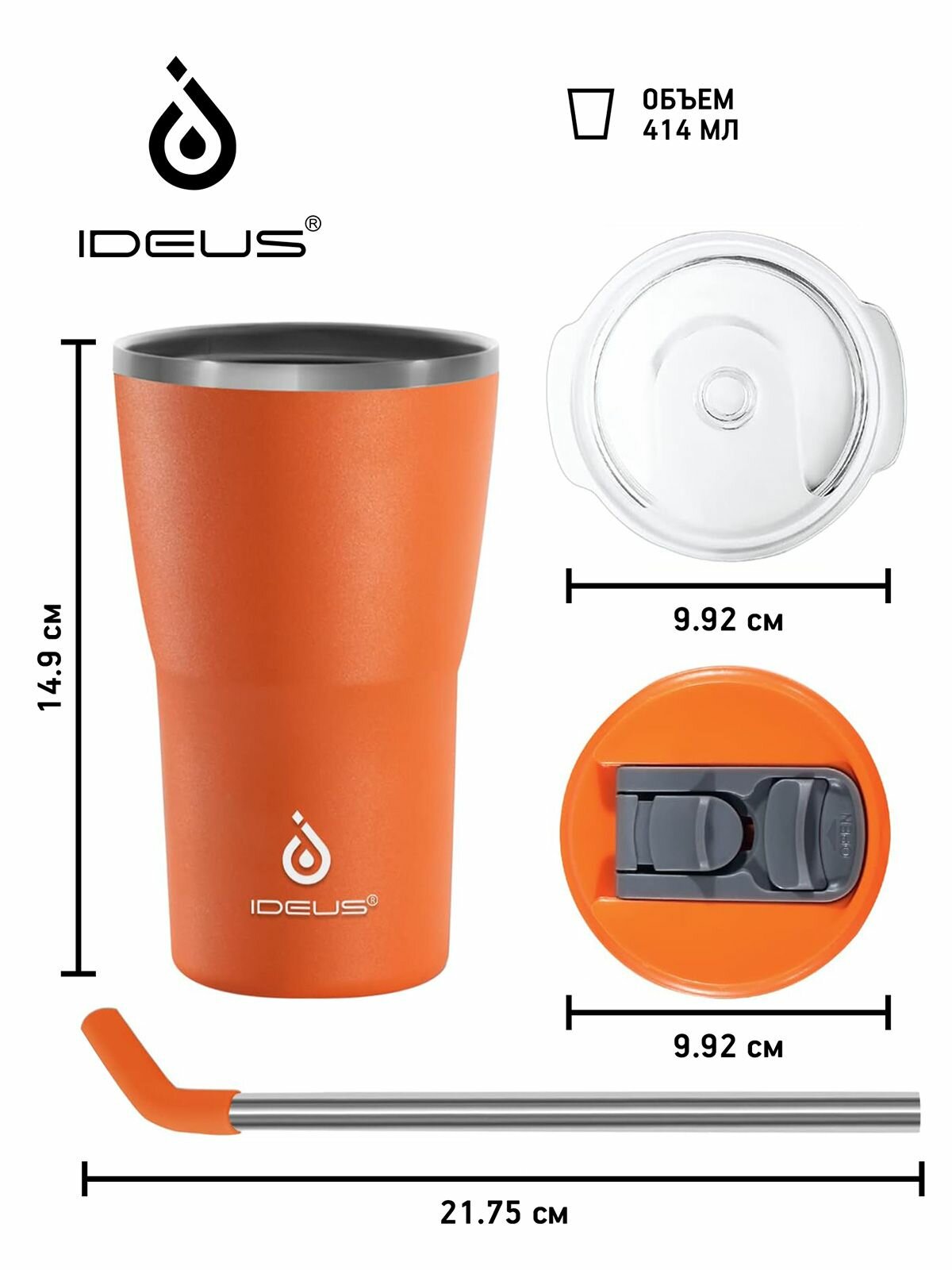 Термокружка для кофе чая термостакан вакуумный походный с трубочкой Sapporo, 414 мл, оранжевый: сравнение цен, характеристики, фото, актуальное наличие и цены.