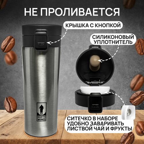 Термокружка 500 мл оснащена силиконовым держателем и дном, которые обеспечивают удобство и безопасность использования. Благодаря откручивающейся крышке, напиток можно легко заливать внутрь, а герметичность конструкции гарантирует, что жидкость не прольётся даже при наклоне. Эта модель сохраняет температуру как горячих, так и холодных напитков до 5 часов, что делает её идеальным выбором для путешествий или офисной работы.