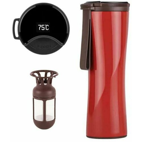 Не подделка и не копия, 100% оригинальный товар! Нержавеющая сталь Корпус изготовлен из пищевой нержавеющей стали и безопасного пластика с силиконовым уплотнением. Крышка выполнена с двойной защитой от протекания и случайного открытия, что предотвращает пролив воды в процессе использования. Эргономичный дизайн Современный дизайн с встроенными передовыми технологиями, чашка станет незаменимой в повседневном применении и позволит сохранить требуемую температуру на протяжении длительного времени. Для удобства транспортировки предусмотрена качественная силиконовая ручка. Продуманная конструкция, закругленные углы - все это делает новинку устойчивой, еще более надежной и комфортной. Очень удобно держать в руке. При создании термоса Kiss Kiss Fish CC Cup дизайнеры компании вдохновлялись архитектурой центральной Шанхайской башни. Сенсорный OLED-дисплей Оснащен экономичным сенсорным OLED-экраном, установленным в крышке. На дисплее отображается температура налитой жидкости (в градусах Цельсия), а также во сколько поместили воду вовнутрь термокружки. Экран работает от сменной батарейки CR2032, которой хватит на долгий срок (более 12 месяцев в режиме ожидания) и мини-игра. Встроенный датчик определяет температуру напитка внутри чашки с точностью до 1°С. Чтобы узнать, не остыла ли жидкость - достаточно просто перевернуть устройство и встряхнуть. Теплоизоляция: она дарит вам тепло зимой и прохладу летом. (Выше 42 по Цельсию в течение 6 часов, ниже 10 по Цельсию в течение 6 часов). Техническое описаниеТип: термокружкаОбъем: 0.43 лМатериал корпуса: стальМатериал колбы: стальСохраняет тепло: 6 чСохраняет холод: 6 чВысота: 22.8 смДиаметр/ширина корпуса: 8.4 смВес: 310 гОсобенностиОсобенности: вакуумный, ручка на корпусе, отверстие для питья в крышке, ремень для переноскиДополнительная информация: имеет термометр и сенсорный дисплей, который показывает температуру содержимого колбыКомплектацияТермокружка Крышка с клапаномРемешок на запястье Батарейка CR2032 - 1 шт.